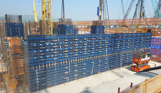대형 판넬 모듈화로 일체화 조립, 설치 및 이동 간편 클램프로 크기 및 높이 조절 가능 타설 발판과 작업대 부착으로 시공성 증대