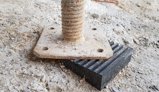 램프 바닥 경사구간에 합판이나 목재를 대체하여 사용 고무재질로 서포트 및 시스템 동바리와 결합 시 틈새가 없으며, 절단 등 추가 작업 불필요